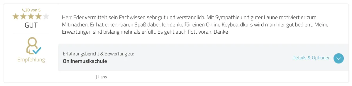 Die moderne Art zu lernen und spielen ist mit diesen Onlinekursen der Onlinemusikschule seit 2008 bestens bewährt und tausende haben bereits damit erfolgreich gelernt bzw. ihr Wissen erweitert.